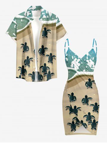 Turtle Sea Print Hawaii Sea Creatures Convertible Beach Cover Up - Turquoise - Xs