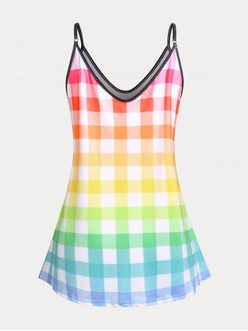 Colorful Plaid Print Plus Size Tank Top - Multi - Xl
