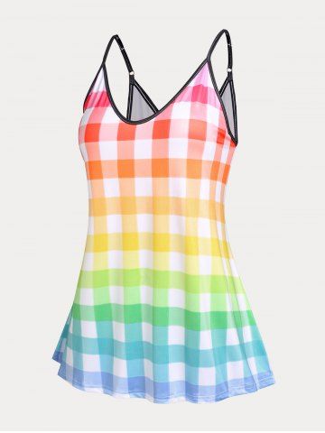 Colorful Plaid Print Plus Size Tank Top - Multi - 4xl