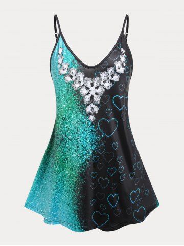 T*****y5Color: BLACK Size: 5XLHeart Print Flowy Plus Size Tank Top - Black Gorgeous green& black heart tank top wears big and flowy