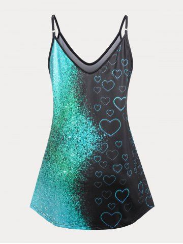 T*****y5Color: BLACK Size: 5XLHeart Print Flowy Plus Size Tank Top - Black Gorgeous green& black heart tank top wears big and flowy