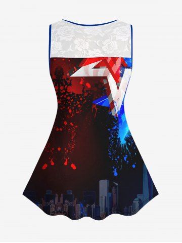 Graphic Tanks > Plus Size 3D Floral Lace Painting Splatter Pentagram Ombre Print Tank Top
