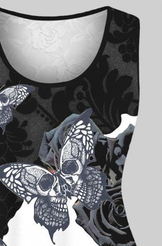Plus Size 3D Lace Skull Butterfly Rose Flower Print Tank Top - Black - Xs
