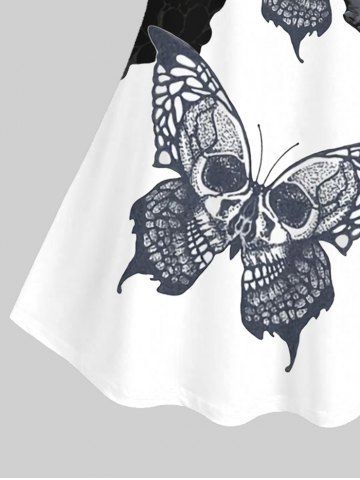 Plus Size 3D Lace Skull Butterfly Rose Flower Print Tank Top - Black - 3x