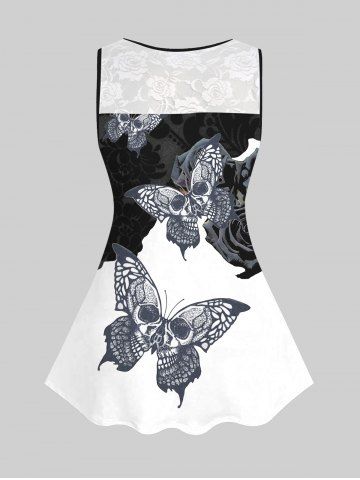 Plus Size 3D Lace Skull Butterfly Rose Flower Print Tank Top - Black - 5x