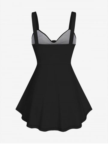 Plus Size 3D Lace Up Print Cinched Tank Top - Black - 2x