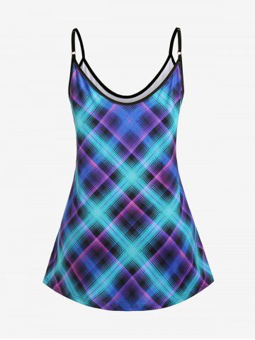 A*****a5Plus Size 3D Lace Up Printed Plaid Cami TopColor: CONCORD Size: 4XLBeautiful fabric and very soft. Fits perfectly comfortable and I love it.