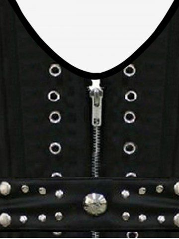 Plus Size 3D Rivet Grommets Zipper Print Cami Top (Adjustable Shoulder Strap) - Black - 2x