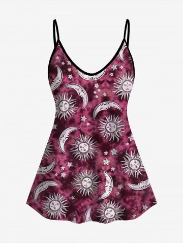 Plus Size 3D Sun Moon And Colorblocks Print Cold Shoulder Tank Top - Deep Red - 3x | Us 22-24