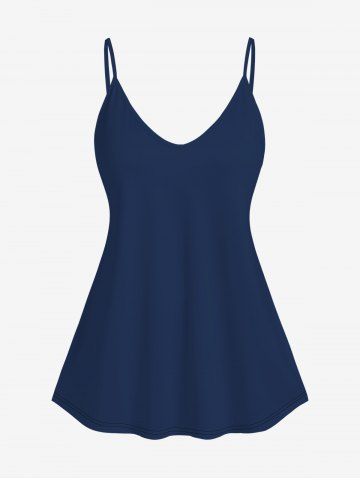 Plus Size Basic Cami Top (Adjustable Shoulder Straps) - Deep Blue - S
