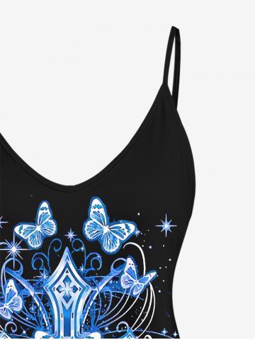 Plus Size Butterfly Cross Star Glitter 3D Print Cami Top (Adjustable Shoulder Strap) - Blue - 2x