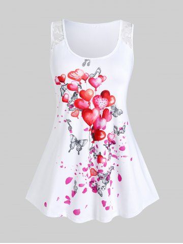 Graphic Tanks > Plus Size Butterfly Heart Print Tank Top