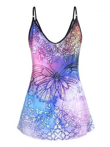 Plus Size Butterfly Print Flowy Cami Top - Multi - 2xl