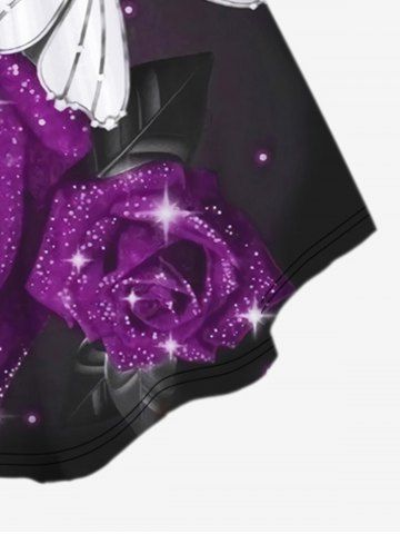 Plus Size Butterfly Rose Glitter Print Cinched Tank Top - Purple - S