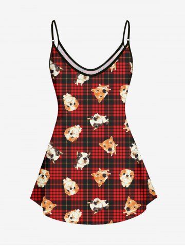 Plus Size Christmas Plaid Dog Print Cami Top - Red - M