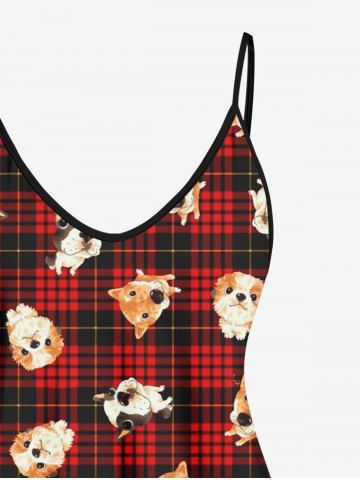 Plus Size Christmas Plaid Dog Print Cami Top - Red - 5x