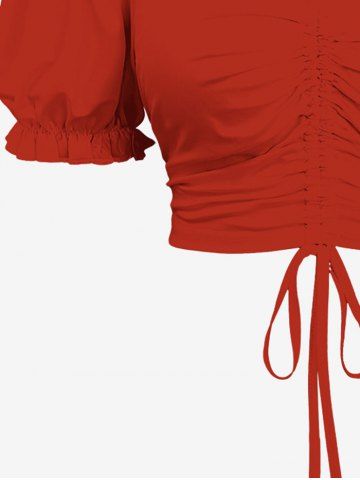 Plus Size Cinched Ruched Ruffles Cold Shoulder Cami Top - Red - 2x