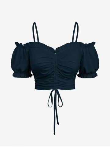 Plus Size Cinched Ruched Ruffles Cold Shoulder Cami Top - Black - L