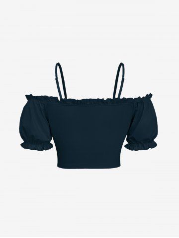 Plus Size Cinched Ruched Ruffles Cold Shoulder Cami Top - Black - 4x