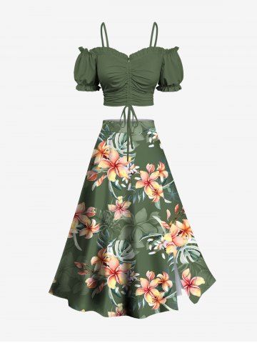 Plus Size Cinched Ruched Ruffles Cold Shoulder Cami Top - Deep Green - L