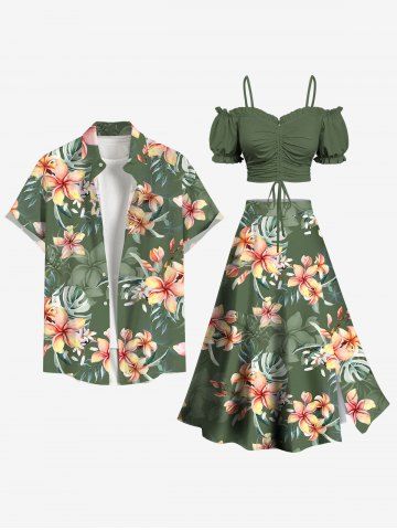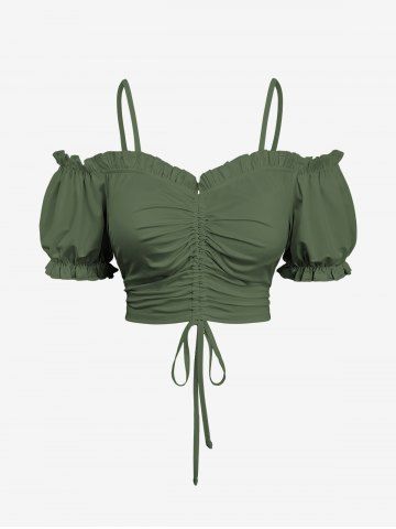 Plus Size Cinched Ruched Ruffles Cold Shoulder Cami Top - Deep Green - 3x