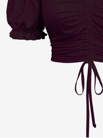 Plus Size Cinched Ruched Ruffles Cold Shoulder Cami Top - Deep Red - 5x