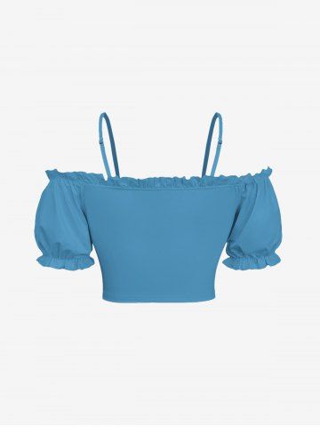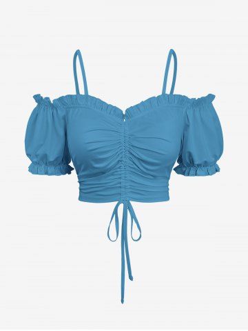 Plus Size Cinched Ruched Ruffles Cold Shoulder Cami Top - Sky Blue - 3x