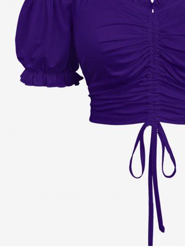 Plus Size Cinched Ruched Ruffles Cold Shoulder Cami Top - Concord - S