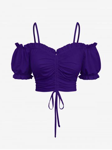 Plus Size Cinched Ruched Ruffles Cold Shoulder Cami Top - Concord - 1x
