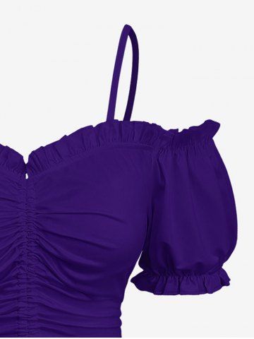 Plus Size Cinched Ruched Ruffles Cold Shoulder Cami Top - Concord - 3x