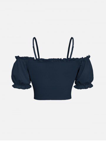 Plus Size Cinched Ruched Ruffles Cold Shoulder Cami Top - Midnight Blue - S