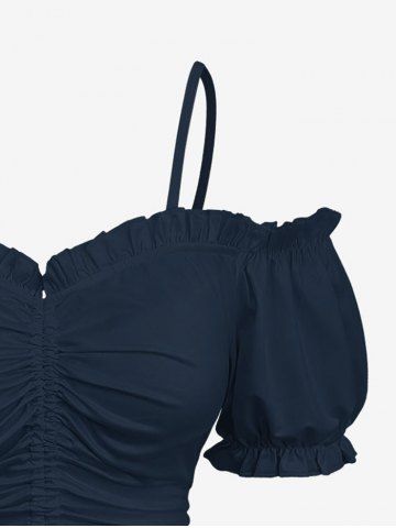 Plus Size Cinched Ruched Ruffles Cold Shoulder Cami Top - Midnight Blue - M