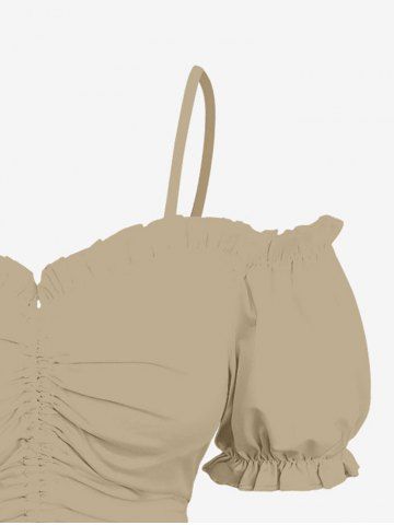 Plus Size Cinched Ruched Ruffles Cold Shoulder Cami Top - Light Coffee - L