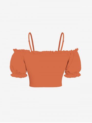 Plus Size Cinched Ruched Ruffles Cold Shoulder Cami Top - Orange - 3x