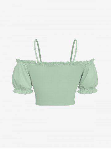 Plus Size Cinched Ruched Ruffles Cold Shoulder Cami Top - Green - 2x