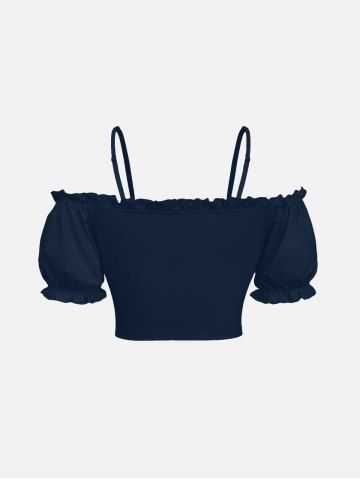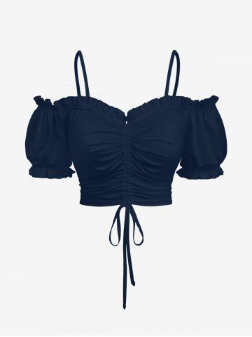 Plus Size Cinched Ruched Ruffles Cold Shoulder Cami Top - Navy Blue - 6x