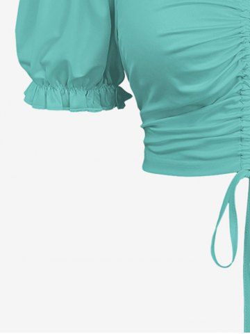 Plus Size Cinched Ruched Ruffles Cold Shoulder Cami Top - Green - 2x