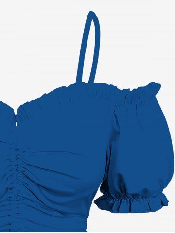 Plus Size Cinched Ruched Ruffles Cold Shoulder Cami Top - Blue - Xs