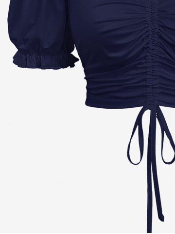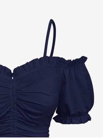 Plus Size Cinched Ruched Ruffles Cold Shoulder Cami Top - Navy Blue - L