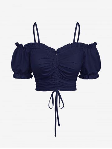 Plus Size Cinched Ruched Ruffles Cold Shoulder Cami Top - Navy Blue - 1x