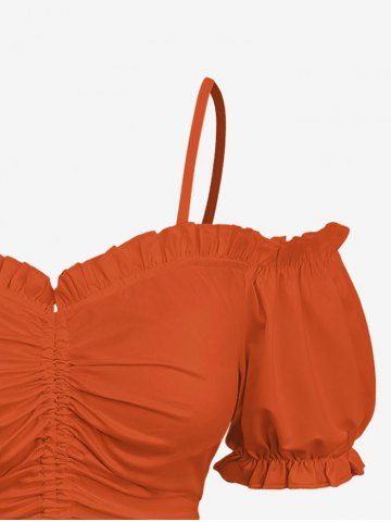 Plus Size Cinched Ruched Ruffles Cold Shoulder Cami Top - Bright Orange - S