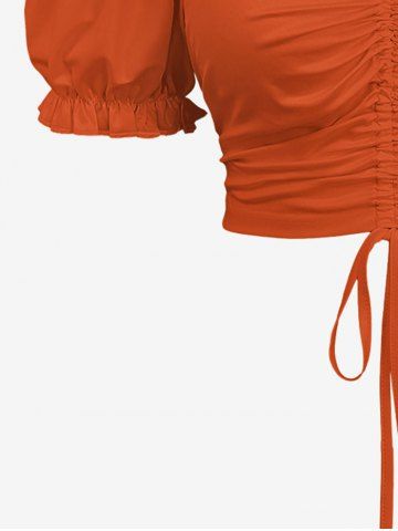 Plus Size Cinched Ruched Ruffles Cold Shoulder Cami Top - Bright Orange - 5x