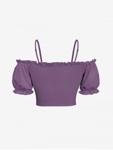 Plus Size Cinched Ruched Ruffles Cold Shoulder Cami Top - Purple - S