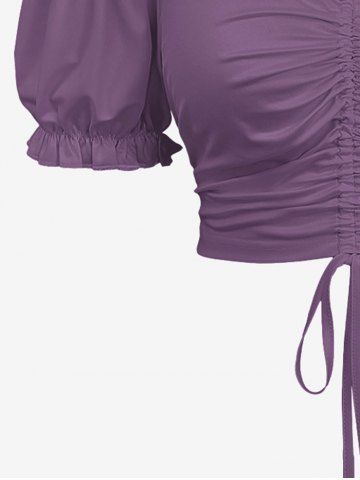 Plus Size Cinched Ruched Ruffles Cold Shoulder Cami Top - Purple - 1x