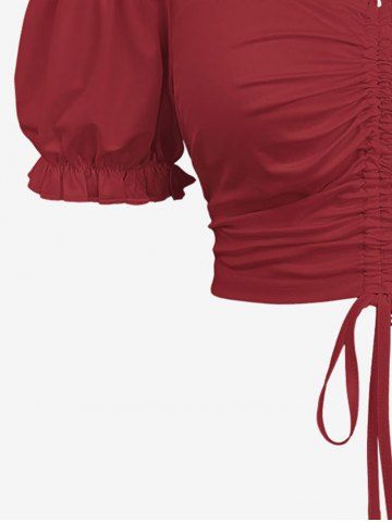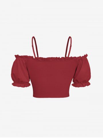 Plus Size Cinched Ruched Ruffles Cold Shoulder Cami Top - Red - 4x