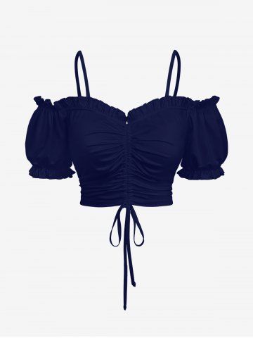 Plus Size Cinched Ruched Ruffles Cold Shoulder Cami Top - Navy Blue - L