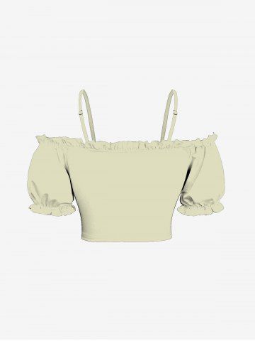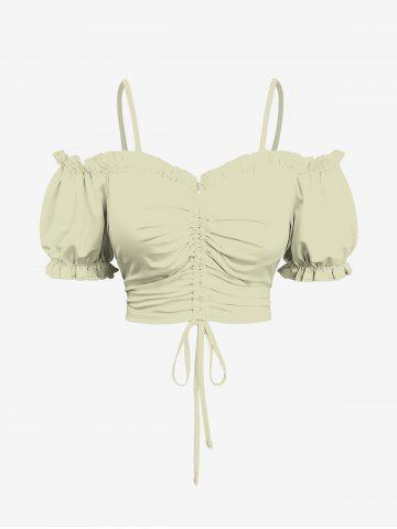 Plus Size Cinched Ruched Ruffles Cold Shoulder Cami Top - Light Green - L