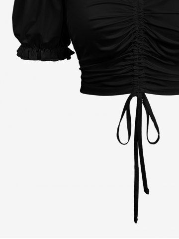 Plus Size Cold Shoulder Puff Sleeve Cinched Solid Cami Top - Black - 2x