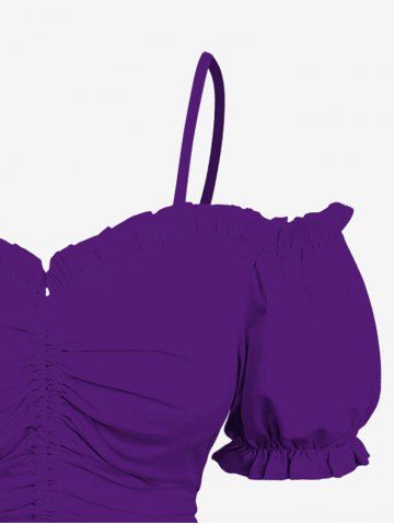 Plus Size Cold Shoulder Puff Sleeve Solid Cinched Top - Purple - 1x
