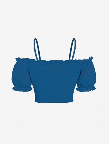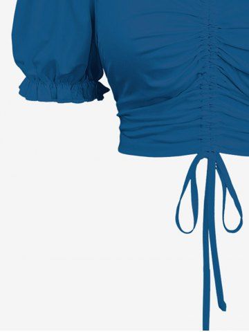 Plus Size Cold Shoulder Puff Sleeve Solid Cinched Top - Blue - 6x